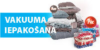 VAKUUMA IEPAKOŠANA: uz pusi samazina uzglabāšanai nepieciešamo vietu, pasargā no kodēm, pelējuma un putekļiem, saglabā svaigumu, pasargā no alerģijas. Cena – 3 EUR / 1 iepakojums